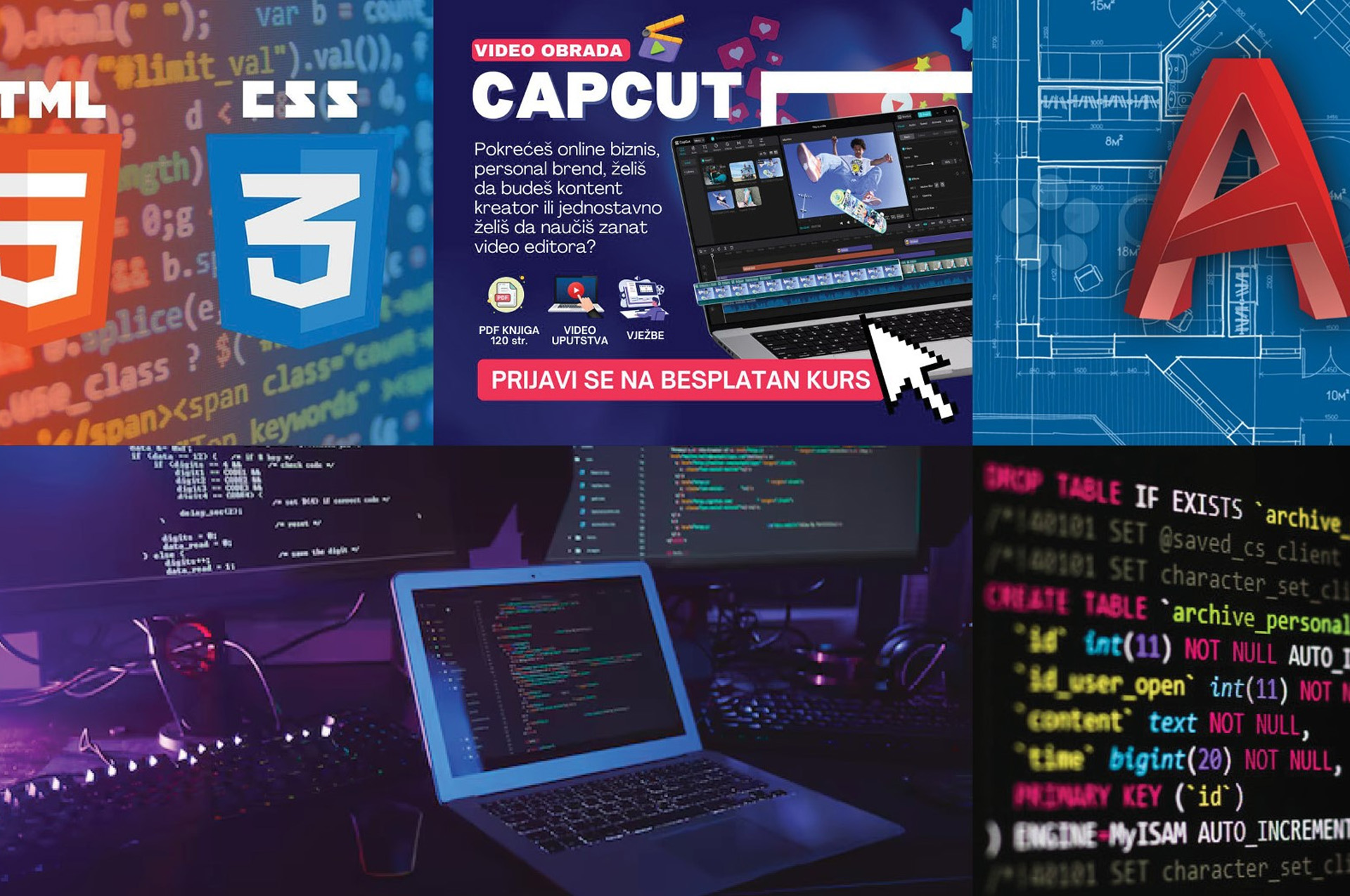 Unaprijedite svoje vještine kroz naših 18 kurseve iz web dizajna, programiranja, grafičkog i multimedijalnog dizajna, tehničkog crtanja i rada u Office alatima.